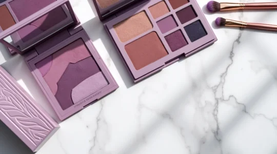 Contrairement aux idées reçues, le maquillage violet ne convient pas qu’aux yeux verts. Cette teinte possède une propriété étonnante : elle illumine les teints olivâtres grâce au contraste qu’elle crée avec les sous-tons jaunes de la peau. Les peaux dorées ou méditerranéennes peuvent ainsi porter du violet avec autant d’élégance que les carnations froides.