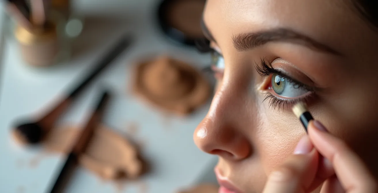 Voici une règle d’or en maquillage : on ne camoufle pas une couleur, on la neutralise. Appliquer un anti-cernes lumineux directement sur un cerne très coloré (bleuté, violacé) ne fera que le rendre grisâtre et terne. C’est là que l’ingénierie de la lumière et de la couleur entre en jeu. La première étape, non négociable, est l’application d’un correcteur couleur.